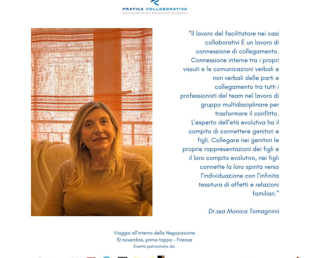 Ringrazio l’ Associazione e gli organizzatori per la bella esperienza del convegno e il Practice Toscano con cui ho lavorato in questi anni collaborando ai casi collaborativi e alla ricerca nell’ambito della Pratica collaborativa.