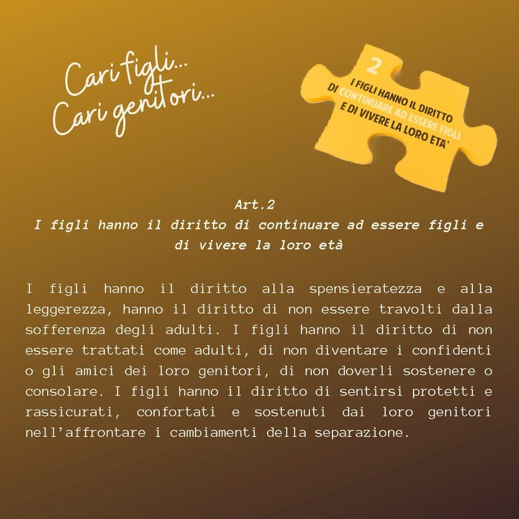 Articolo 2. I figli hanno il diritto di continuare ad essere figli e di vivere la loro età.