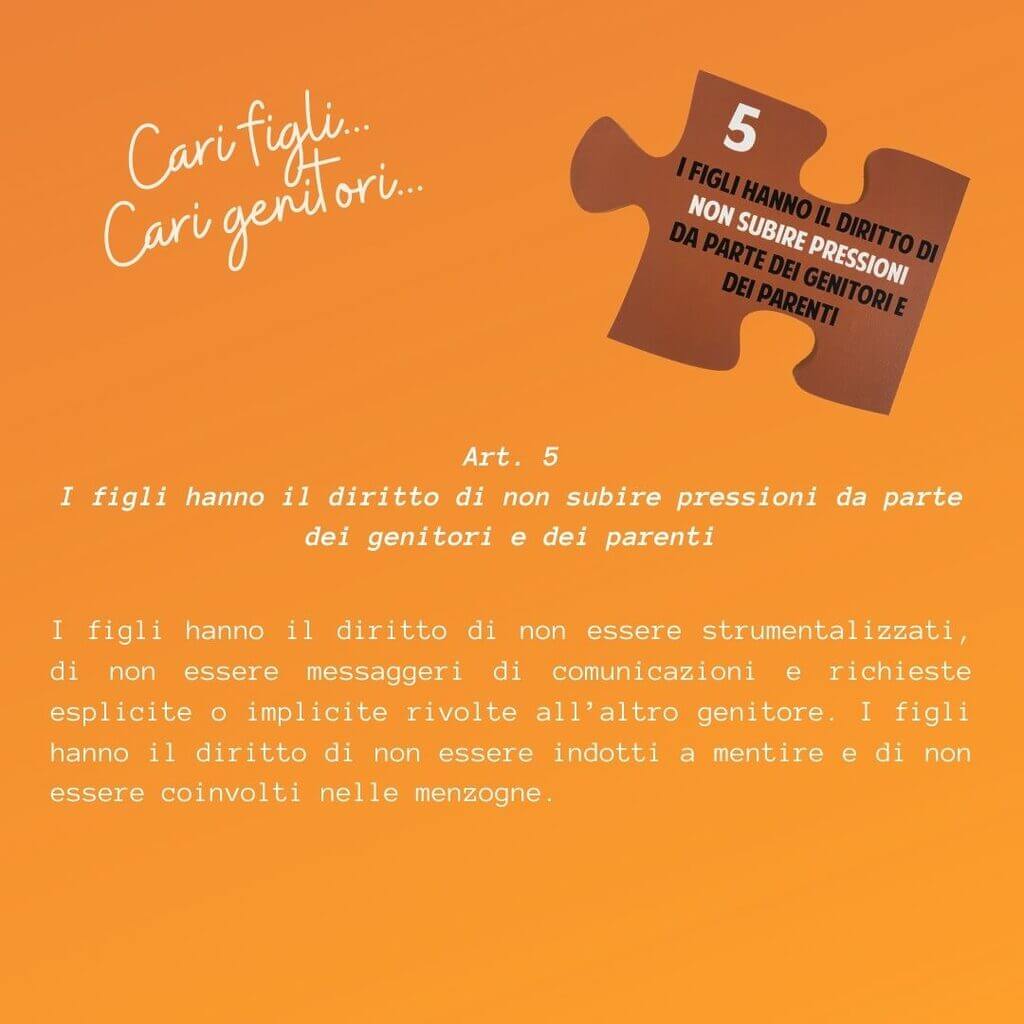 Articolo 5. I figli hanno il diritto di non subire pressioni da parte dei genitori e dei parenti.