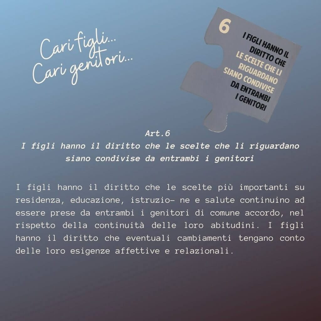 Articolo 6. I figli hanno il diritto che le scelte che li riguardano siano condivise da entrambi i genitori.