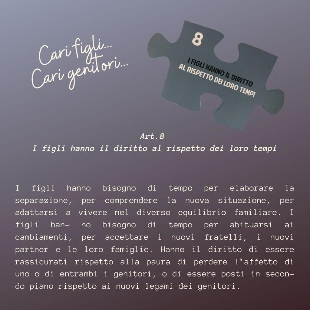 Articolo 8. I figli hanno il diritto al rispetto dei loro tempi.